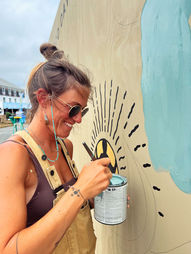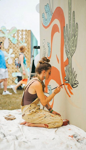 An honor to paint both days in Richmond, Virginia at the first annual Iron Blossom Festival. This was headlined by Noah Kahan, and my mural was inspired by the song "you're gonna go far" by Noah - all about sending out on a new adventure, new road trip to a new place, where all the people you love will be where you're from waiting, and although you're off on a new adventure they're proud of you :)