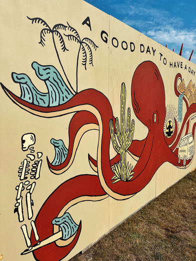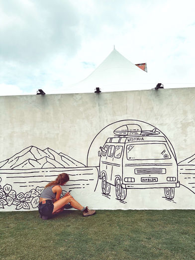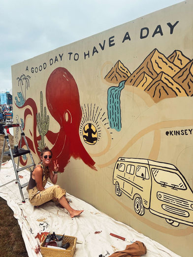 An honor to paint all three days, during this absolutely epic festival! Amazing music, artist and people! This year the canvas size was 16x8 feet, and as one of 10 muralist at this festival, we had creative freedom. This piece I did "A Good Day To Have A Day" was inspired by the idea of going out and living your best day, whether going to the mountains, going for a surf, exploring the desert or heading out somewhere new in your van :)